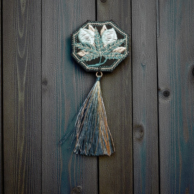 ※タッセルの金具が終売のためフラットな丸環に変更になります。ご了承ください。 着物や羽織の背にアクセントを。 子の刺繍の背守りは付け替えることを前提に作っています。 つけるときは、目立たない糸色で ざくざくと粗く縫い付けてください。 揺れるタッセルがアクセントです。 刺繍しているのと同じ色の糸でタッセルを作っています。 新しい背のアクセサリー「背守り」は、 季節やイベントにリンクして楽しんでほしいアイテムです。 高さ約6㎝(タッセル含まず) 幅4.5センチ タッセルの長さ約6㎝