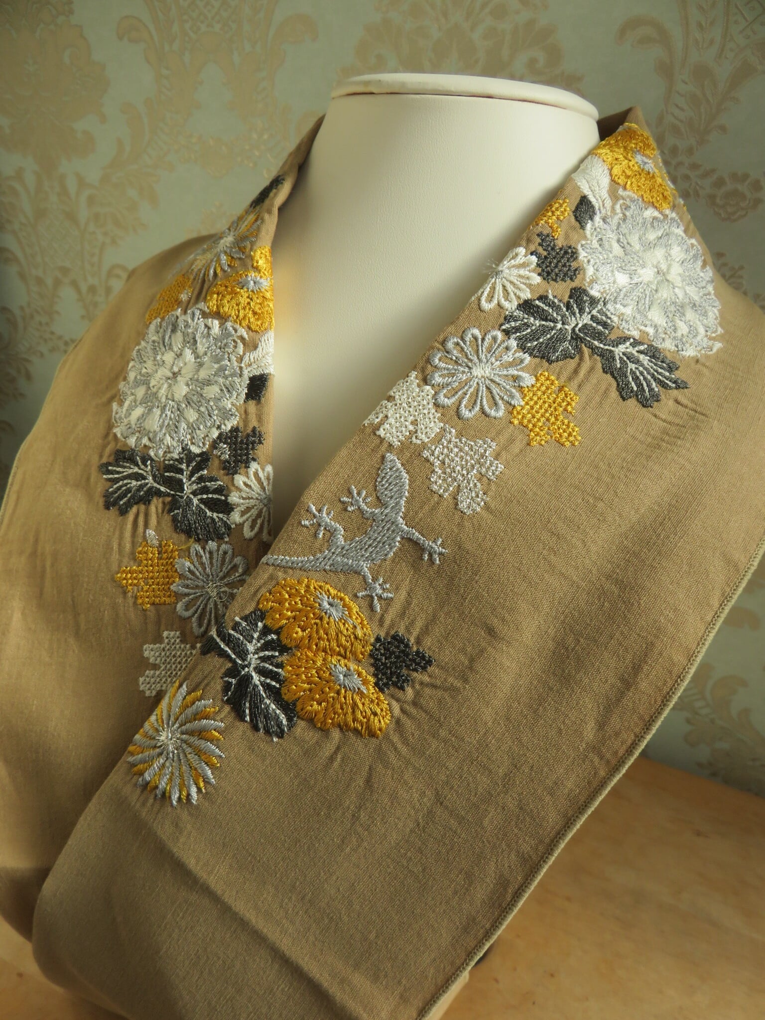 半襟・菊とヤモリとアゲハ