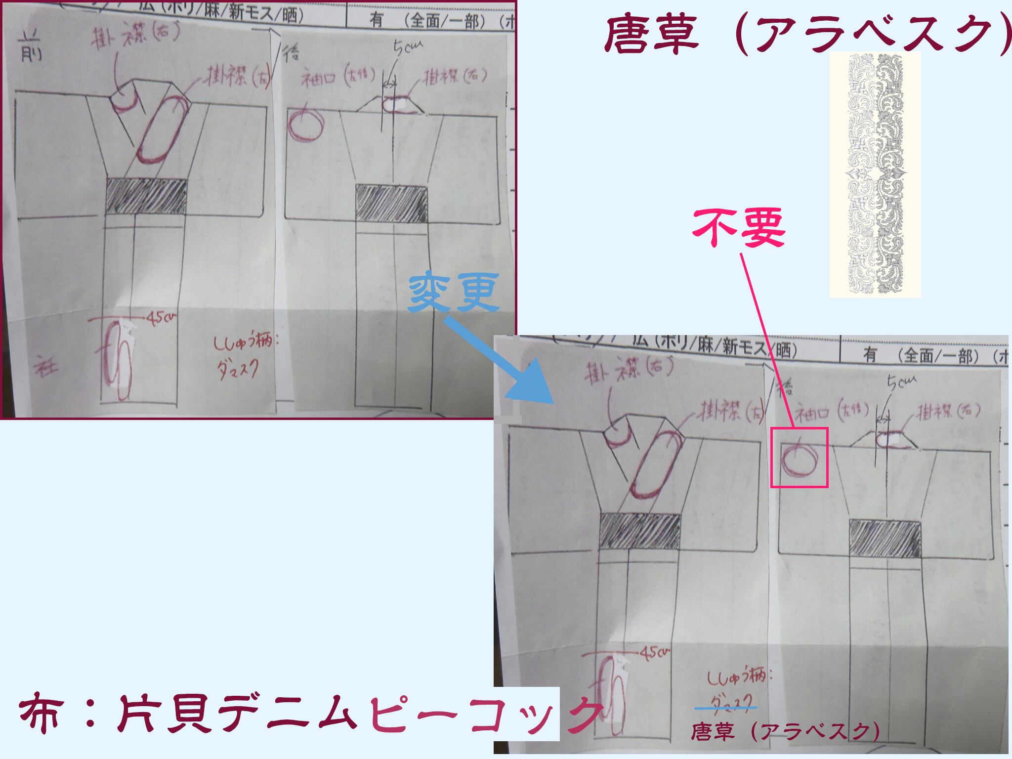 モダン着物小物梅屋さんのお着物に刺繍をお入れします。