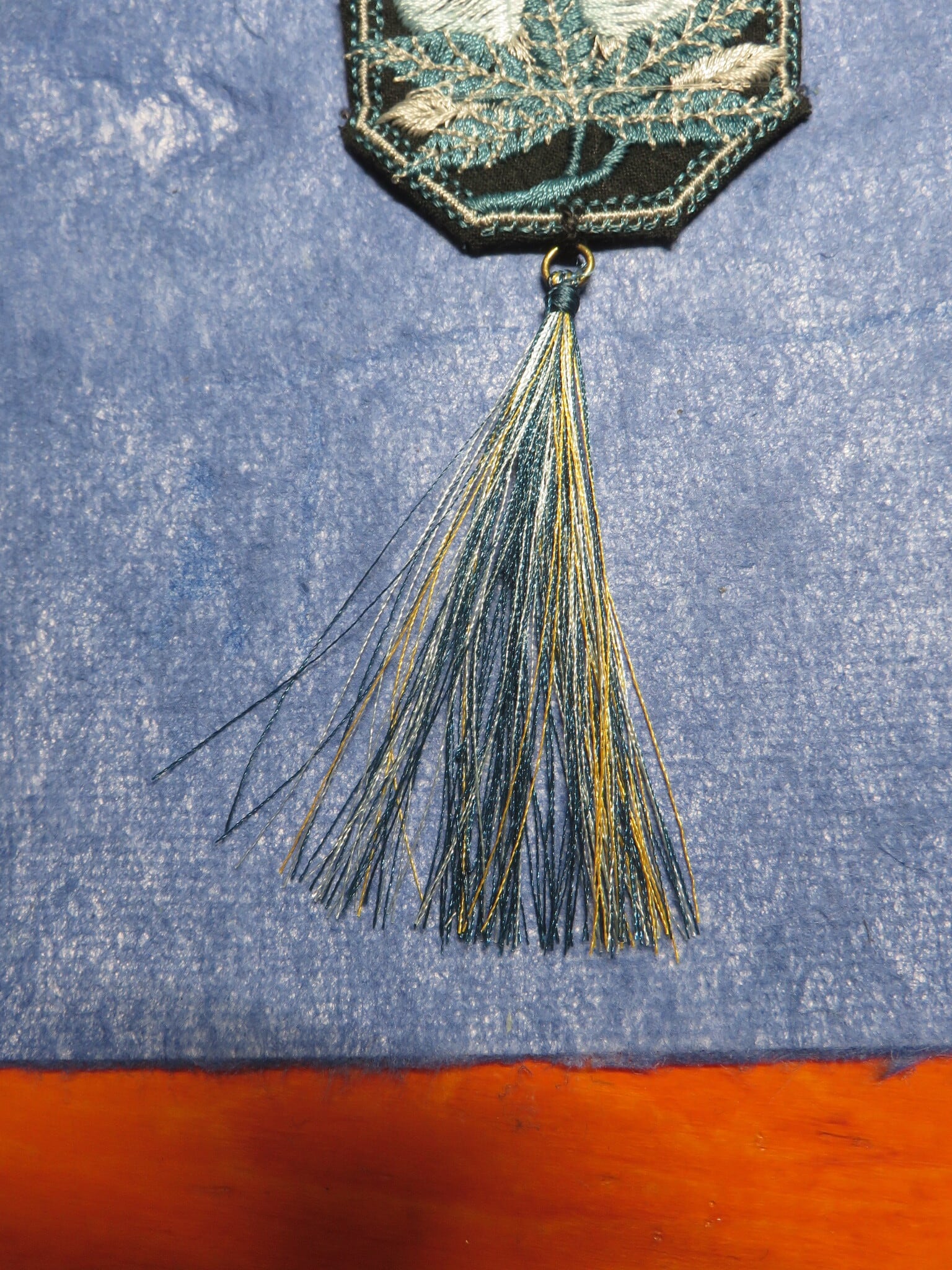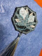 刺繍しているのと同じ色の糸でタッセルを作っています。