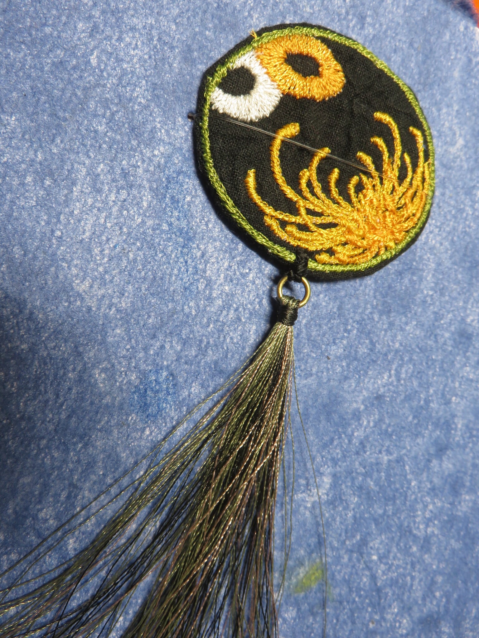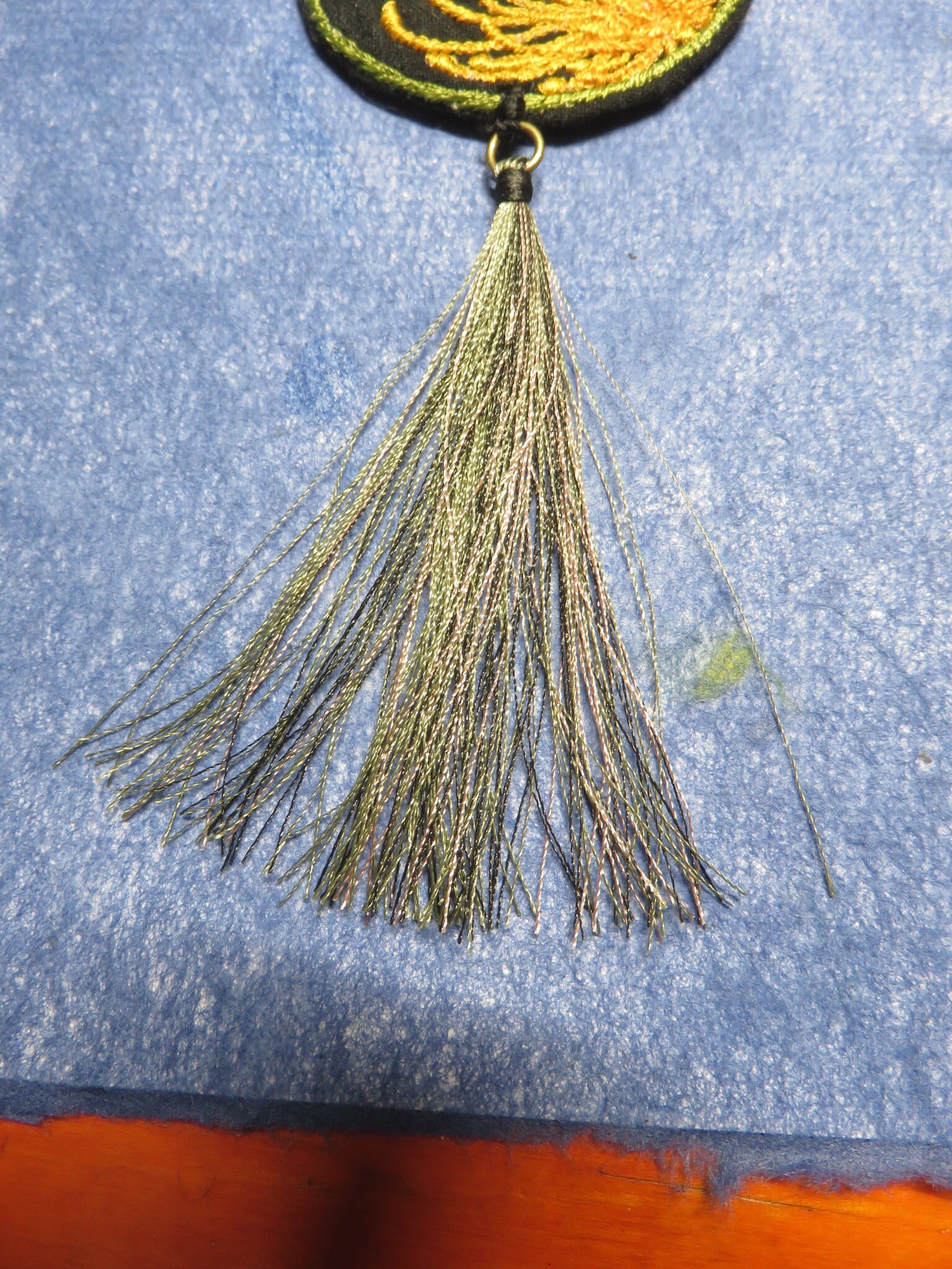 刺繍しているのと同じ色の糸でタッセルを作っています。