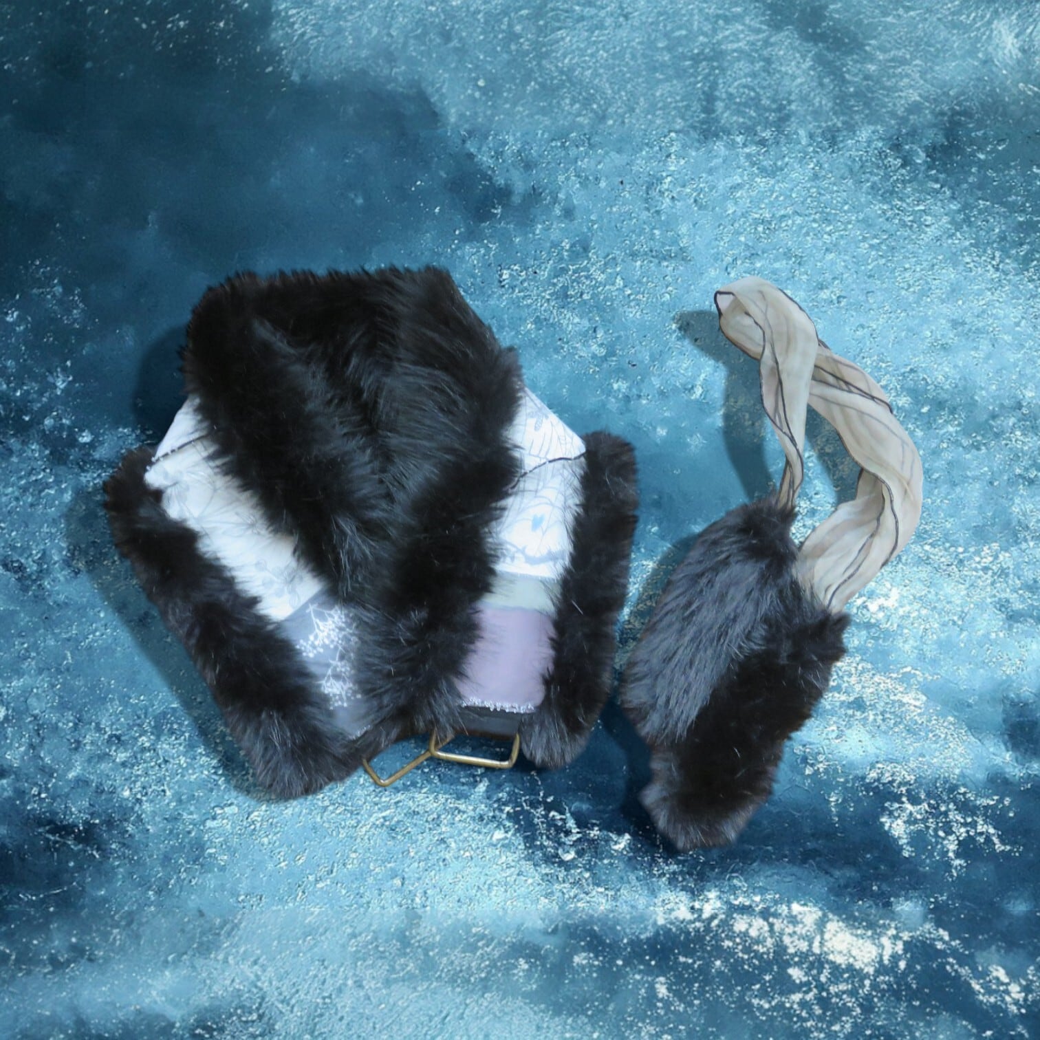 表のファーを出しても、裏の刺繍を出しても素敵です。