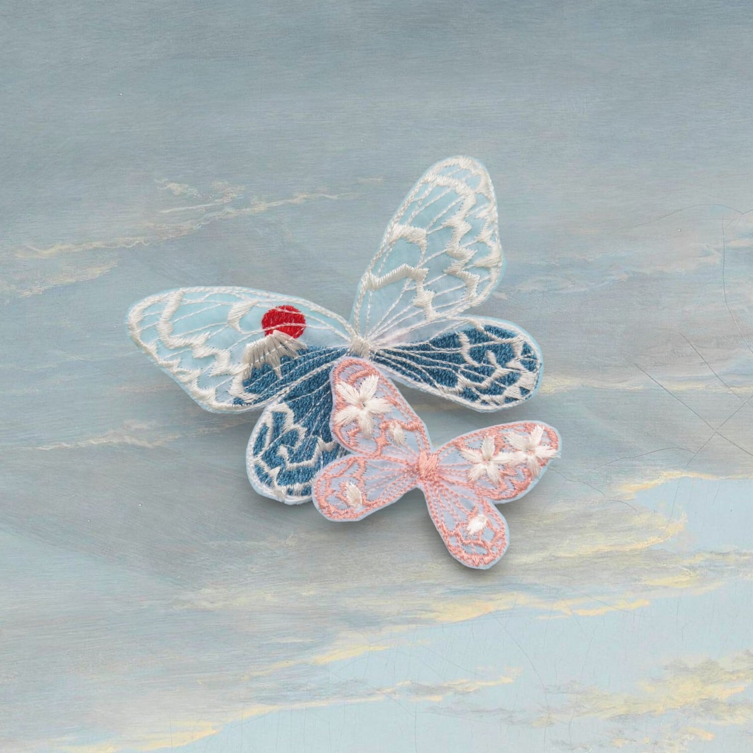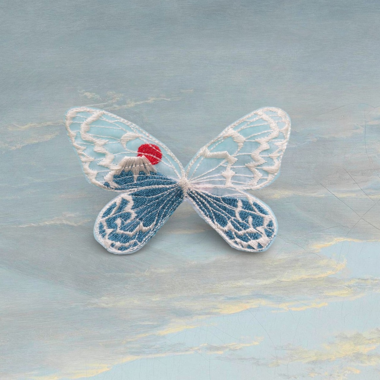 人気のバタフライ、少し大きめで富士山と太陽を刺繍しました。