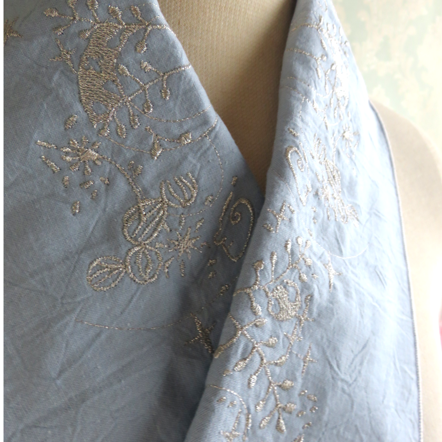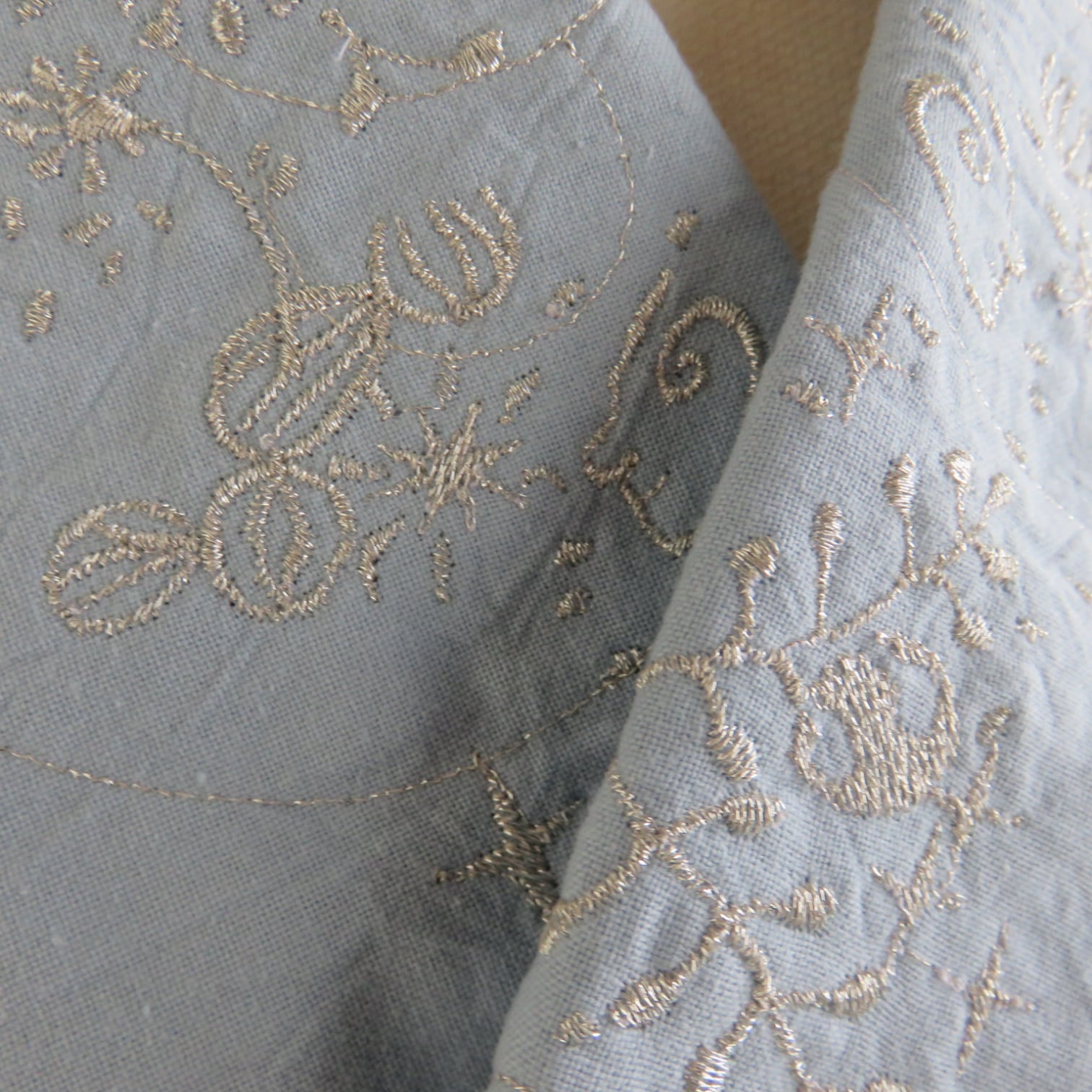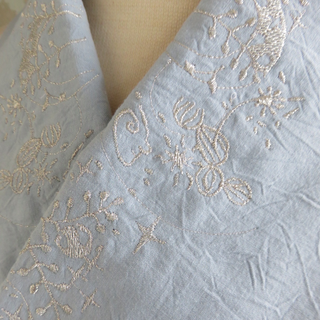 シルバーの糸を使い、線画を描くように刺繍してみました。