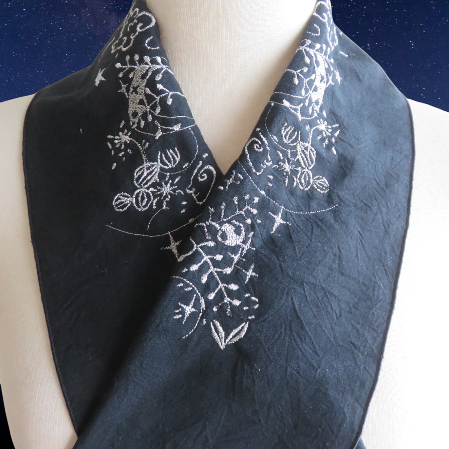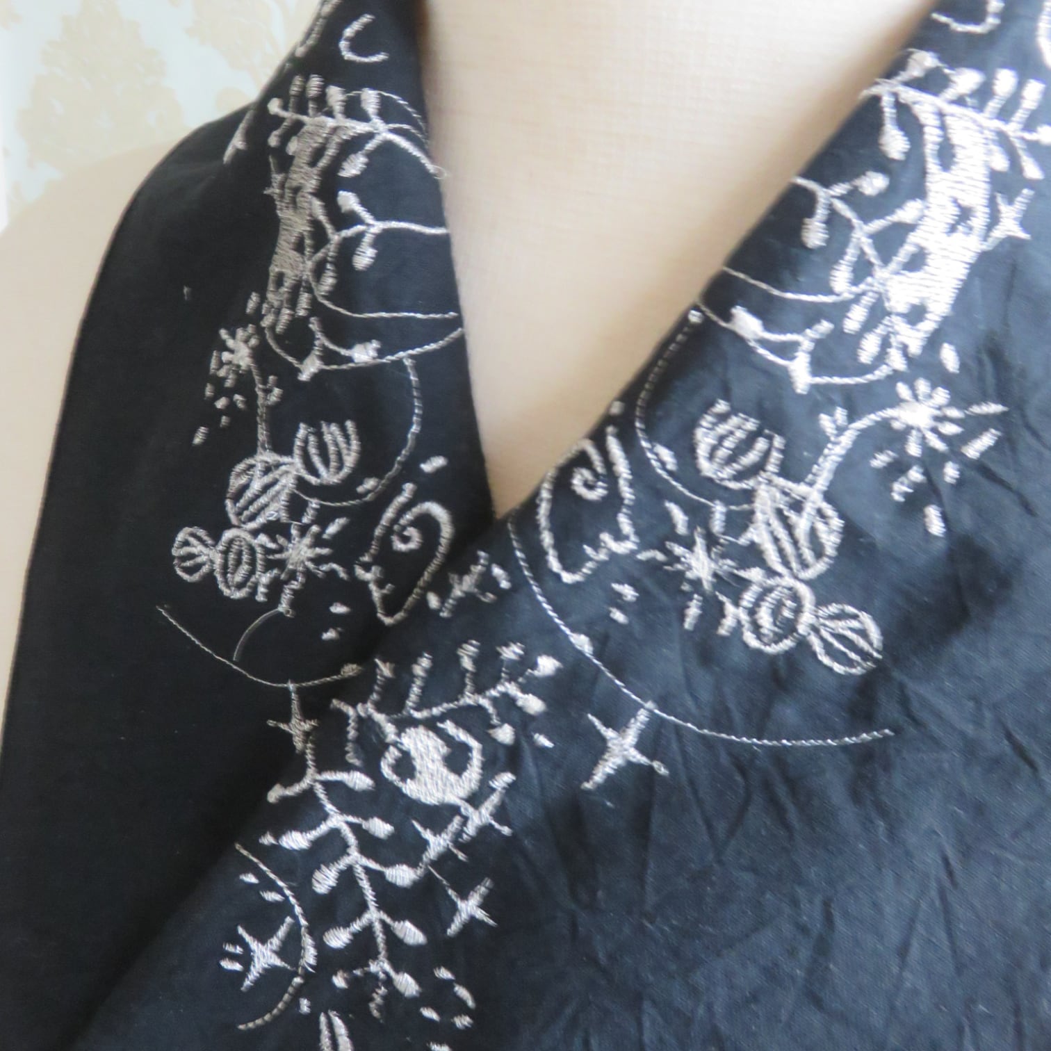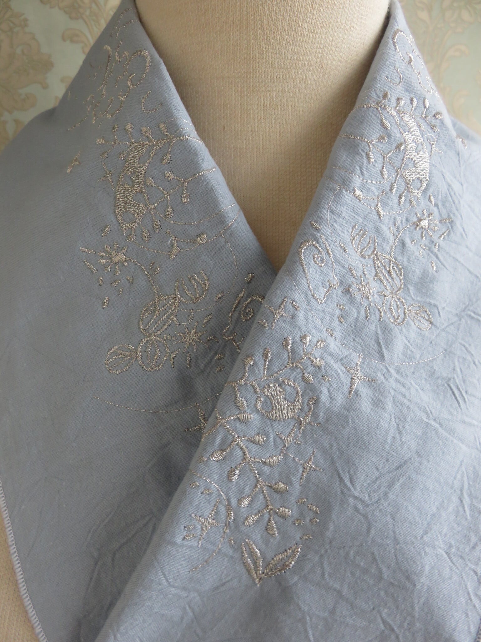 シルバーの糸を使い、線画を描くように刺繍してみました。