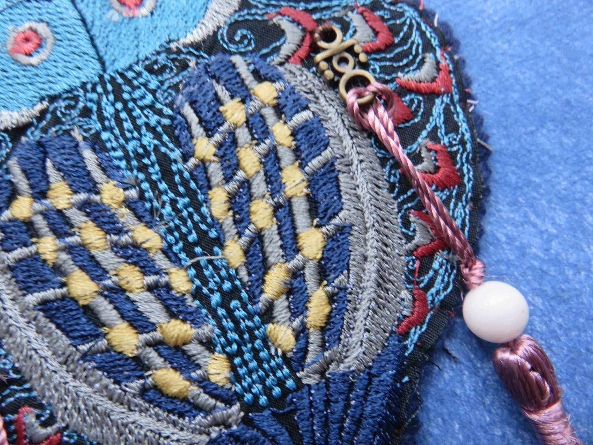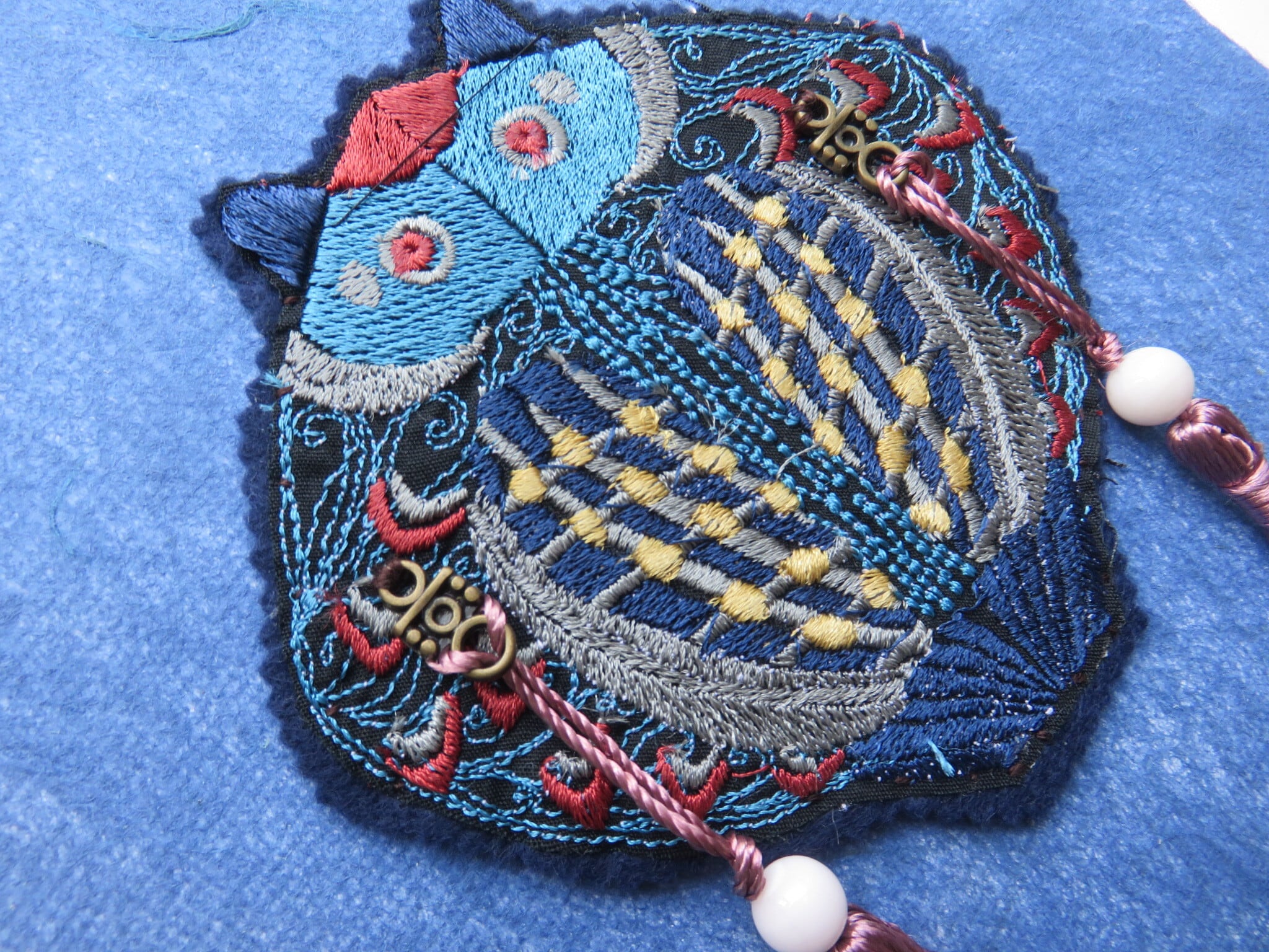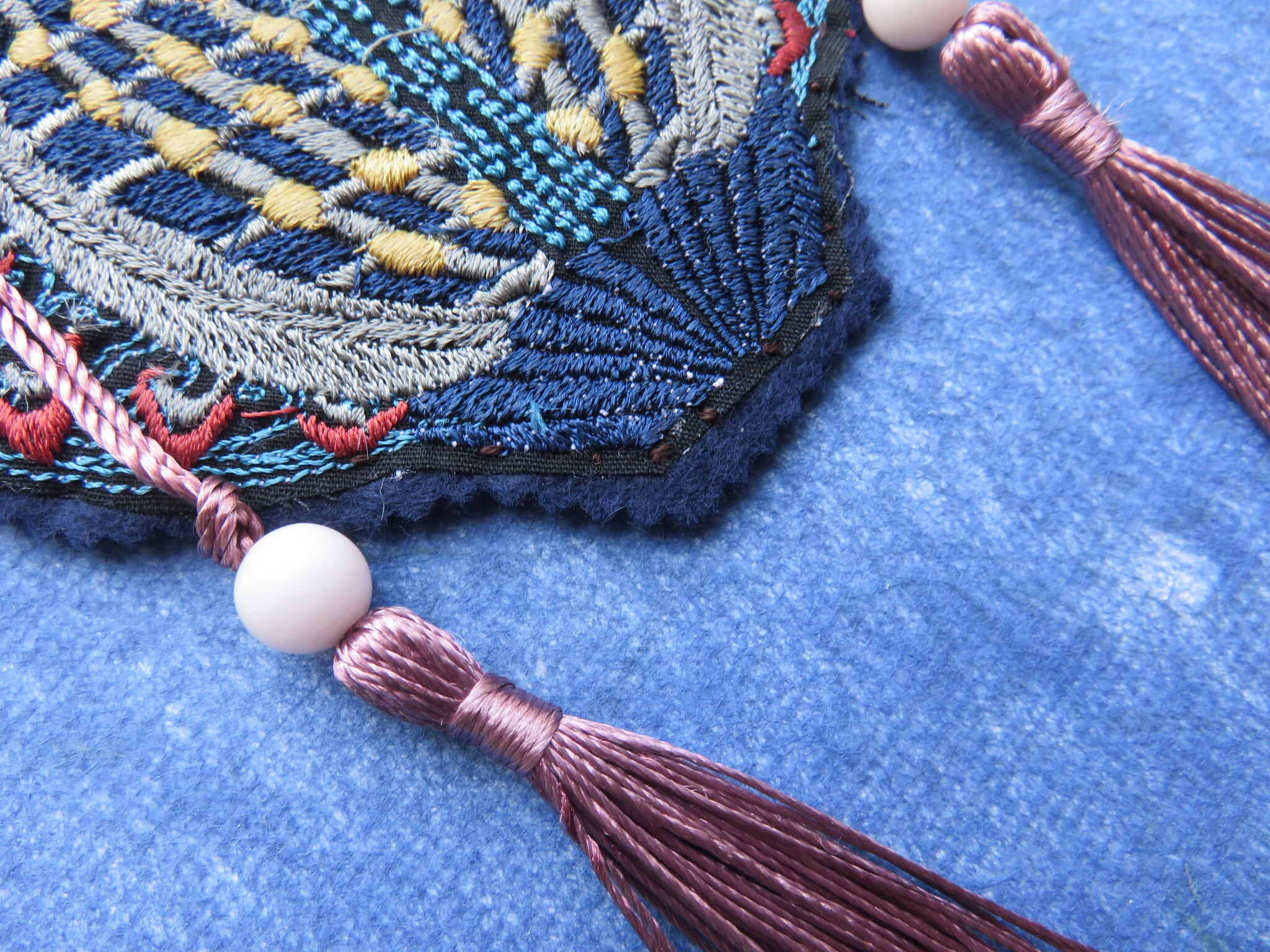 刺繍しているのと同じ色の糸でタッセルを作っています。