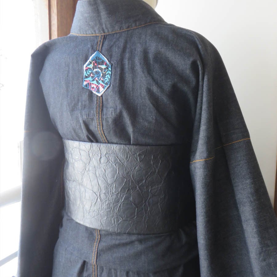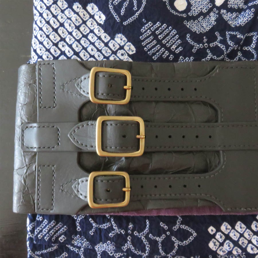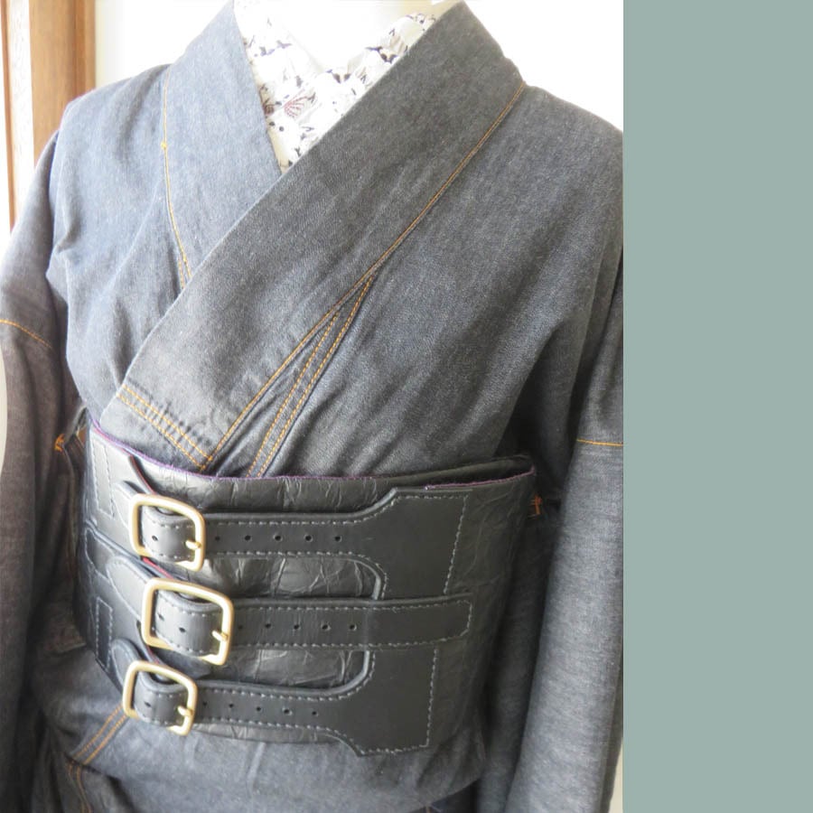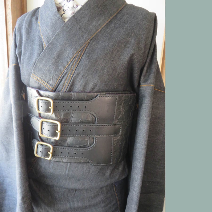 半幅帯を切って帯ベルトにはめてみました。雰囲気がガラッと変わってかっこいいです!