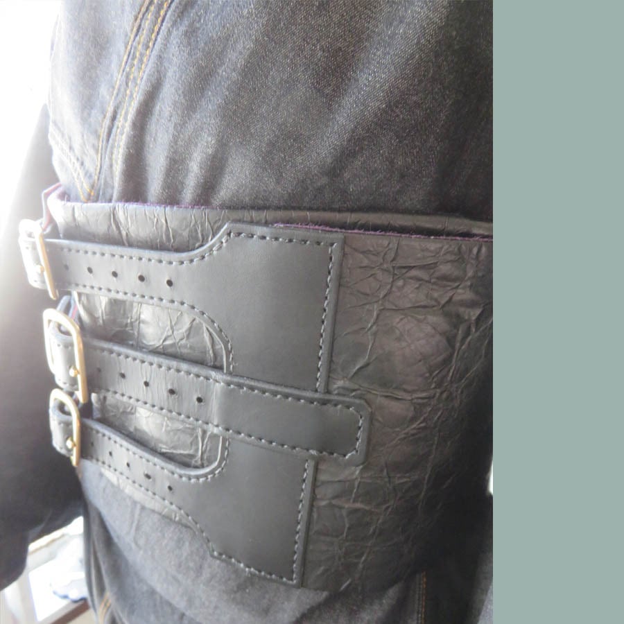 ベルト部分は牛革。真古美。