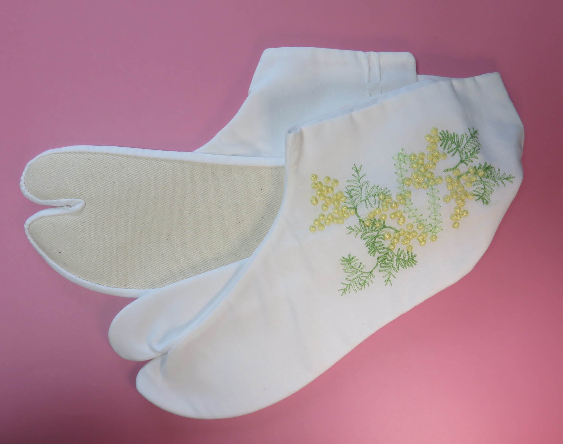 左の側面だけではなく、左右両方に刺繍が入った足袋が欲しいというお客様にお応えします。
