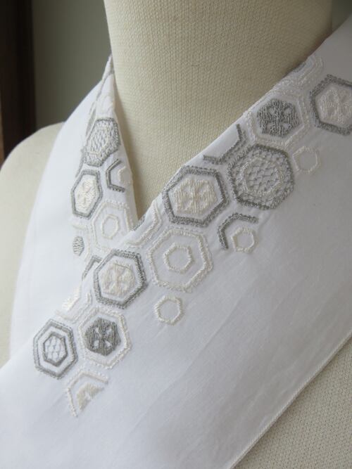 この半衿は近江新之助上布のカリスマ販売員、オグラナユコと富士商会がコラボで作ったヘビロテ間違いなしの半衿です。どんなシーンでも合い、女子力をアップします!自信をもっておすすめします。