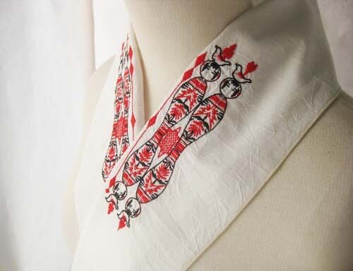 最近人気復活のこけし。シンプルな形と色彩がとても洗練されていてきれいです。そのこけしをモチーフにして半衿を作ってみました。