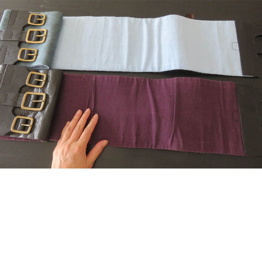 半幅帯を切って帯ベルトにはめてみました。雰囲気がガラッと変わってかっこいいです!