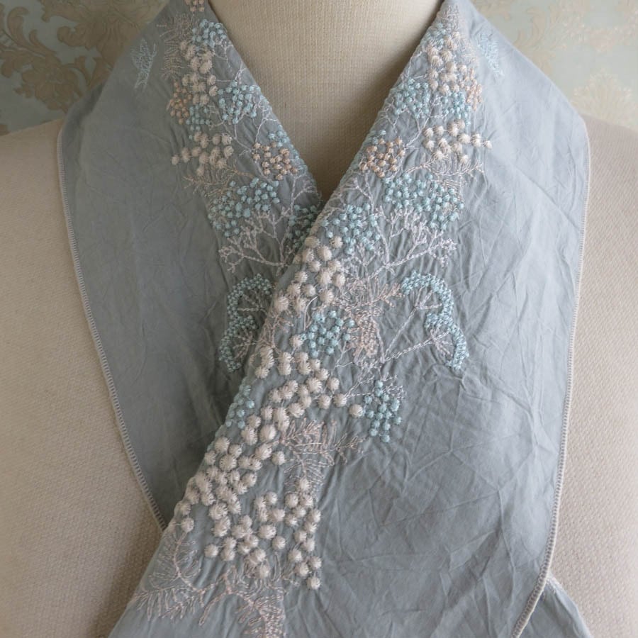 刺繍半衿・ミモザとカスミソウ(両側)