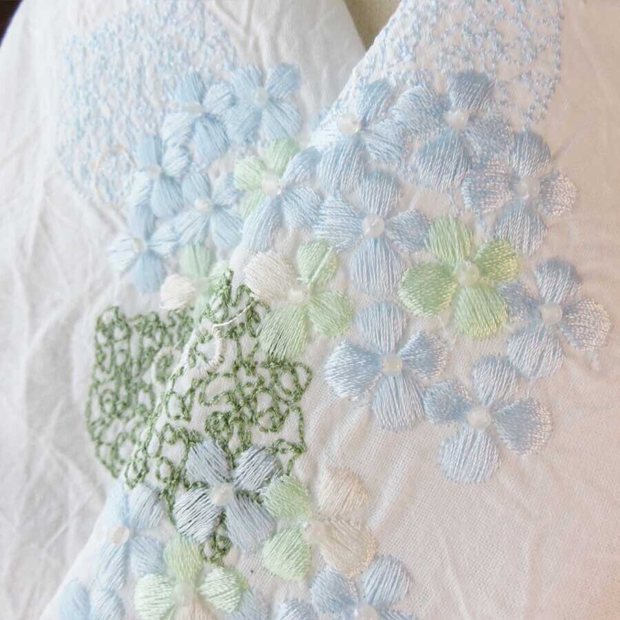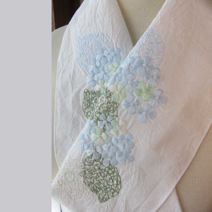 雨に咲く紫陽花の花を刺繍した半衿です。