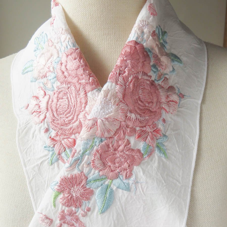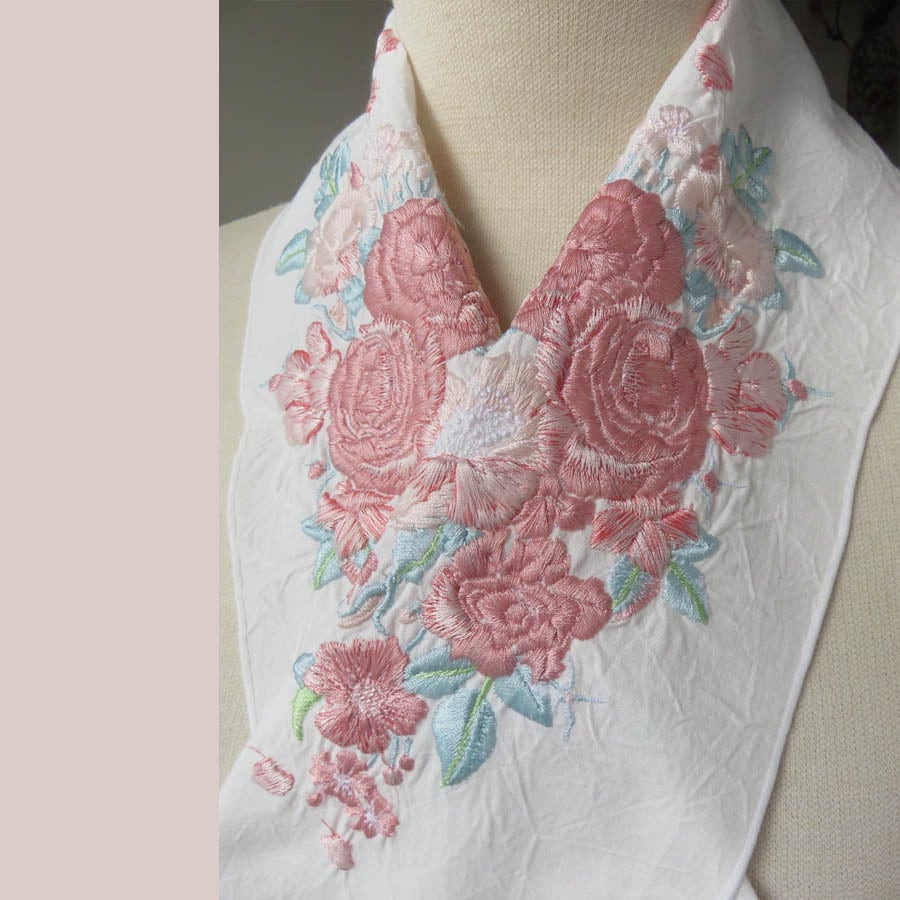 咲き誇る様々な種類の薔薇を刺繍した半衿です。